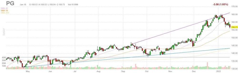 PG rose to $157.50 (+0.49%) in pre-market trading.