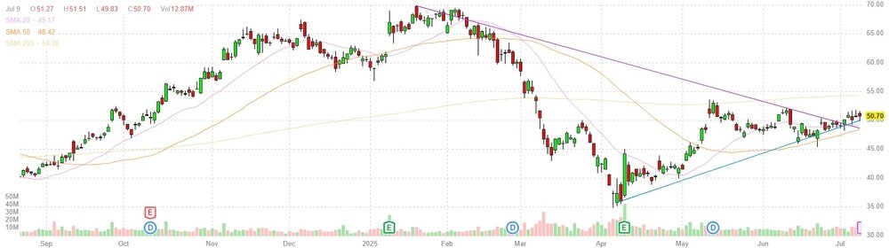 The company issued in-line guidance for Q3 FY2025, seeing EPS of $1.25-1.75 versus analysts’ consensus estimate of $1.34 and revenues of flat to +4% y/y to ~$14.59-15.18 bln versus analysts’ consensus estimate of $14.79 bln.