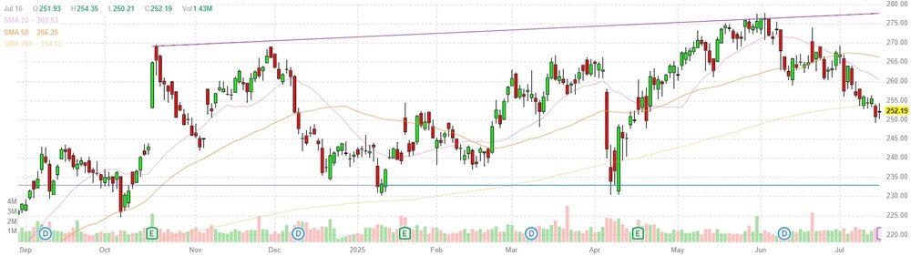 TRV fell to $250.70 (-0.59%) in pre-market trading.