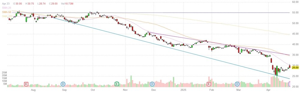 Акции DOW на премаркете снизились до уровня $28.75 (-0.86%).