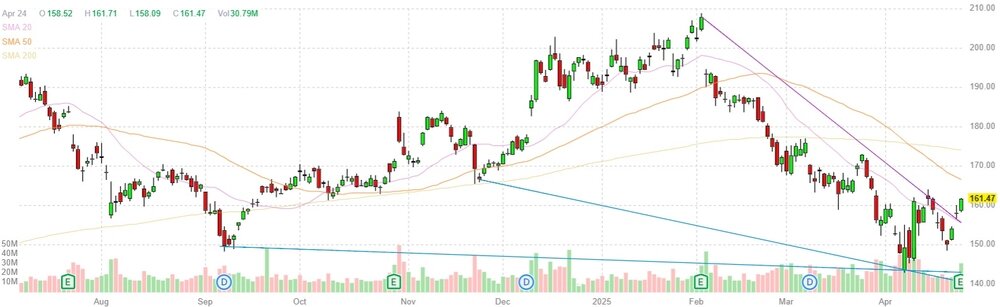 Согласно обнародованному отчету, прибыль компании Alphabet (GOOG) по итогам первого квартала 2025 финансового года (ФГ) достигла $2.81 в расчете на одну акцию (против $1.89 на одну акцию в первом квартале 2024 ФГ), что оказалось заметно выше консенсус-прогноза аналитиков на уровне $2.01 на одну акцию.