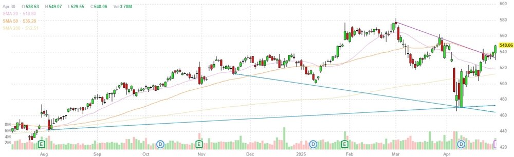Согласно обнародованному отчету, прибыль компании Mastercard (MA) по итогам первого квартала 2025 финансового года (ФГ) достигла $3.73 в расчете на одну акцию (против $3.31 на одну акцию в первом квартале 2024 ФГ), что оказалось выше консенсус-прогноза аналитиков на уровне $3.58 на одну акцию.