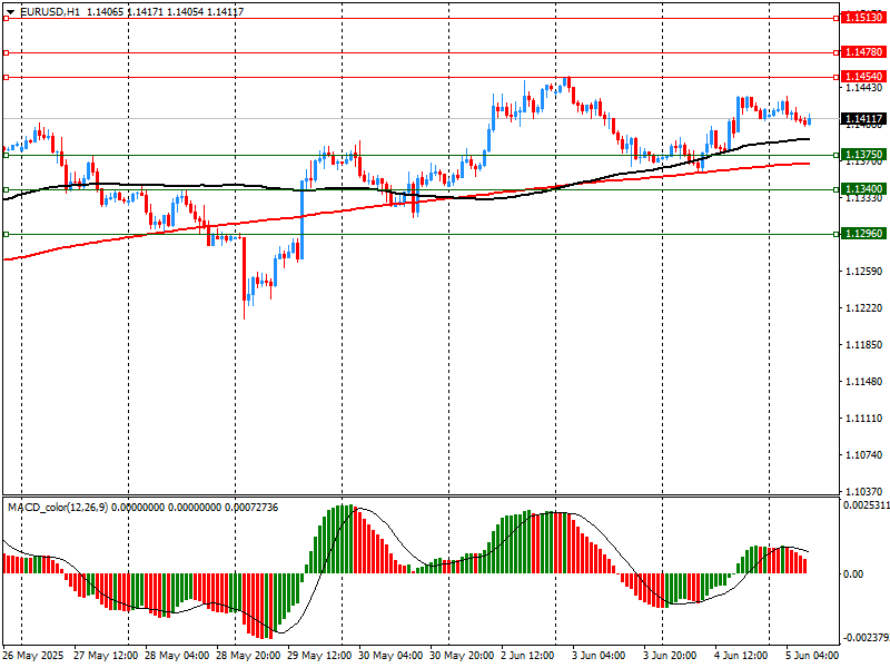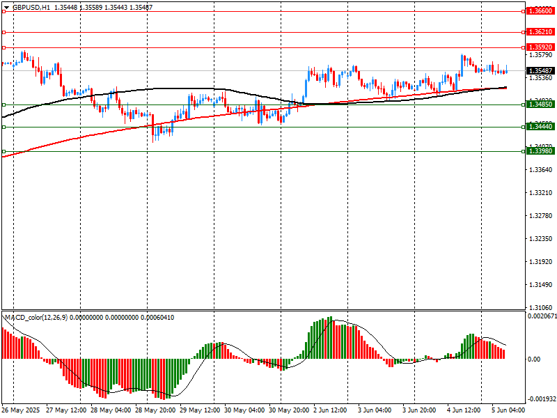 - общий открытый интерес по CALL опционам и PUT опционам с датой экспирации 6 июня составляет 147757 контракта (согласно данным за 4 июня), при этом максимальное количество контрактов привязано к страйку $1,1350 (8562);