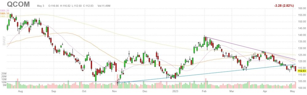 Акции QCOM на премаркете снизились до уровня $104.77 (-7.14%).