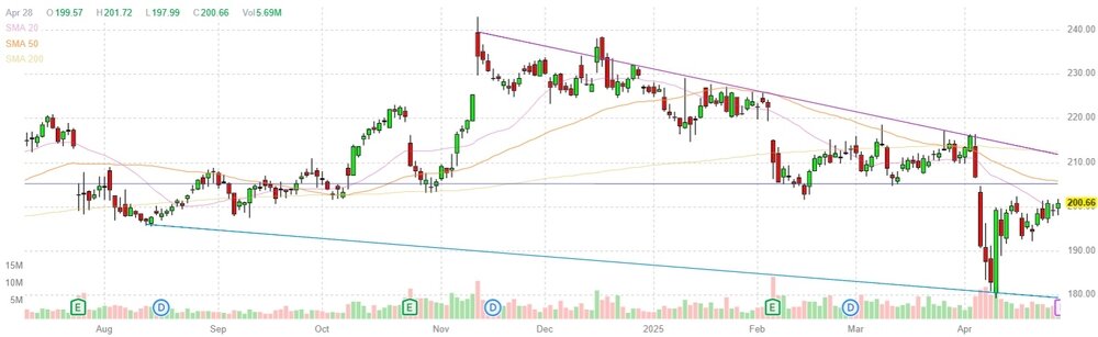Компания также обнародовала обновленный прогноз на 2025 ФГ, согласно которому ее прибыль составит $10.20-10.50 на акцию против ранее прогнозируемых $10.10-10.50 на акцию и консенсус-прогноза аналитиков в $10.38 на акцию при выручке в $39.6-40.5 млрд. против ранее прогнозируемых $39.6-40.6 млрд. и консенсус-прогноза аналитиков в $40.37 млрд.