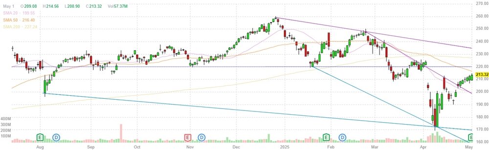 Акции AAPL на премаркете снизились до уровня $206.85 (-3.03%).