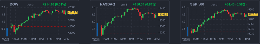 Основные фондовые индексы США зафиксировали повышение, поскольку данные, которые показали неожиданное увеличение числа вакансий в США в апреле, затмили сообщение о снижении ОЭСР прогнозов мирового роста на 2025 год, усилившее опасения по поводу влияния торговой политики президента США Трампа.
