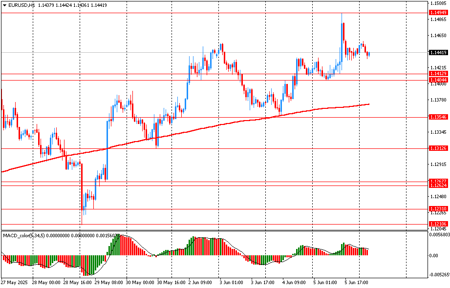 Вчера пара EUR/USD торговалась с повышением и закрыла день на положительной территории около цены 1.1440. Сегодня пара торговалась в узком диапазоне 1.1435-55, оставаясь вблизи вчерашней цены закрытия. На часовом графике EUR/USD все еще торгуется выше линии скользящей средней МА (200) Н1 (1.1370). На четырехчасовом графике ситуация аналогичная. Исходя из вышесказанного, вероятно, стоит придерживаться северного направления в торговле и пока пара остается выше MA 200 H1, необходимо искать точки входа на покупку на окончание коррекции.