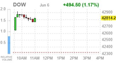 Dow  | 42820.00  | +451.00  | +1.06%  |