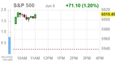 S&P 500  | 6011.75  | +65.75  | +1.11%  |