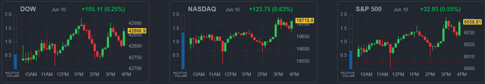 Инвесторы также готовятся к публикации важных данные по индексу потребительских цен (ИПЦ) за май в среду, которые могут стать новым драйвером движения рынков.  Несмотря на опасения, что тарифы Трампа могут снова ускорить рост цен, экономисты полагают, что майские показатели ИПЦ не покажут существенных изменений в инфляционной картине. Основной ИПЦ, вероятно, покажет рост цен на 0.2% м/м и 2.5% г/г в мае по сравнению с ростом на 0.2% м/м и 2.3% г/г в апреле. В то же время базовый ИПЦ, который исключает цены на энергоносители и продукты питания, как ожидается, продемонстрирует рост на 0.3% м/м и 2.9% г/г - немного выше апрельских значений +0.2% м/м и +2.8% г/г, соответственно.