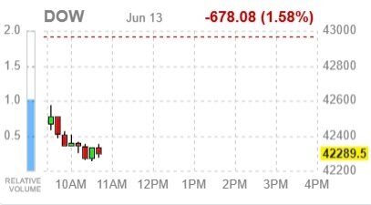 Основные фондовые индексы США снижаются, поскольку настроения отказа от риска охватили рынки после сообщений об ударах Израиля по иранским военным и ядерным объектам.